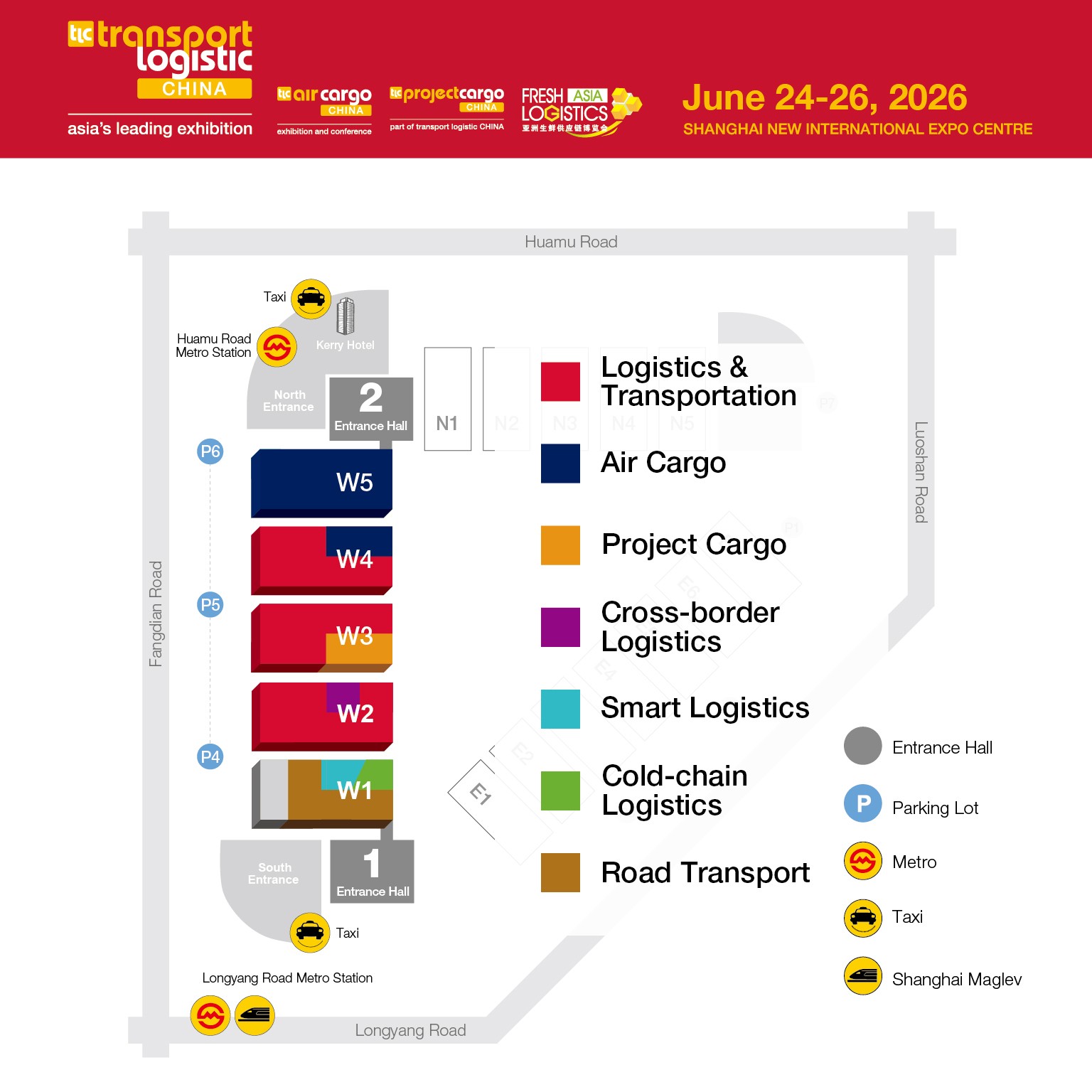 Navigate through the trade fair: Get an overview of the halls occupied at transport logistic China 2026.